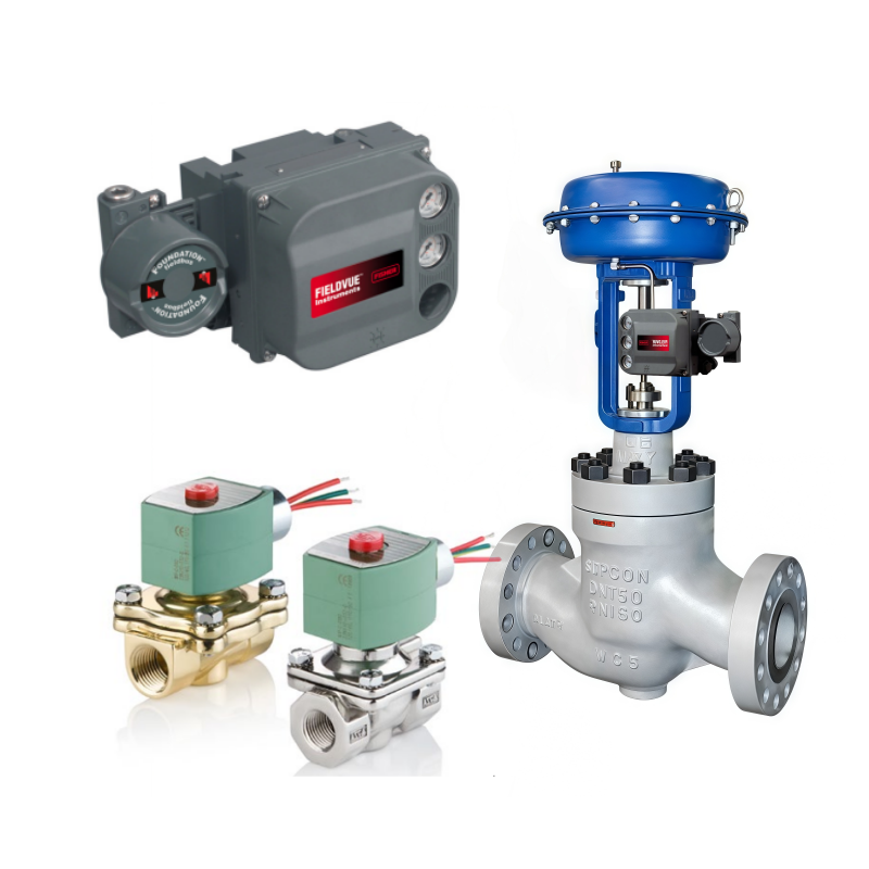 The Fisher FIELDVUE DVC6200 Digital Valve Controller paired with the ASCO 8210 General Service Solenoid Valve delivers a high-integrity safety shutdown solution for pneumatic actuators. The DVC6200 provides precise positioning and partial-stroke testing (PST) with advanced diagnostics, while the ASCO 8210 acts as a fast-acting pilot or shutdown solenoid in the air supply line. This combination is ideal for Safety Instrumented Systems (SIS) requiring SIL capability, reliable on/off control, and compliance with IEC 61511.